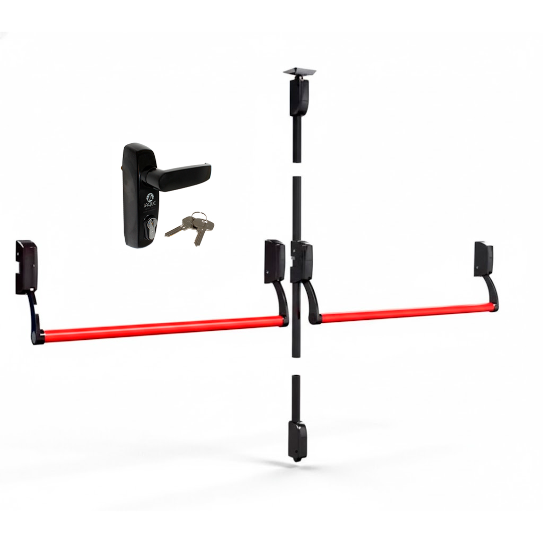 El kit incluye: Soporte para barral T290-00 ( 2 ), barral rojo de 1 metro ( 2 ), T191-00 caja falleba, T291-01 tubo para falleba y picaporte T800m10 con llave.