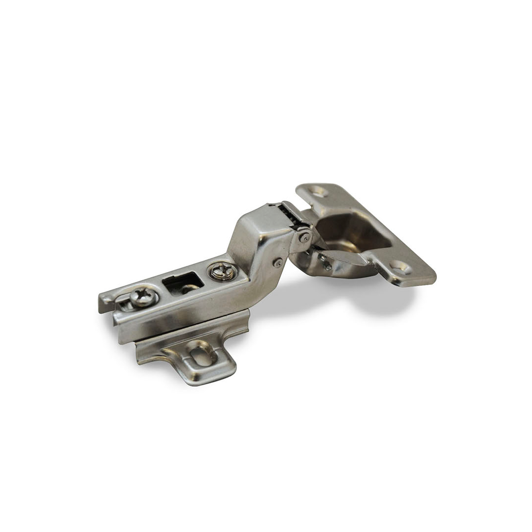 Bisagra de cazoleta desmontable para puertas de muebles que activa la apertura de la puerta al ejercer presión.
