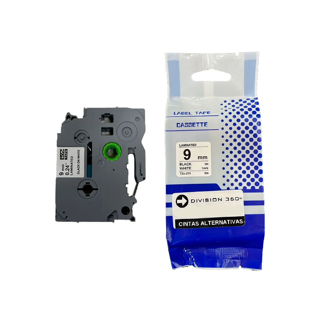 CINTA BROTHER-ALTERNATIVA 9mm NEGRO SOBRE BLANCO cantidad