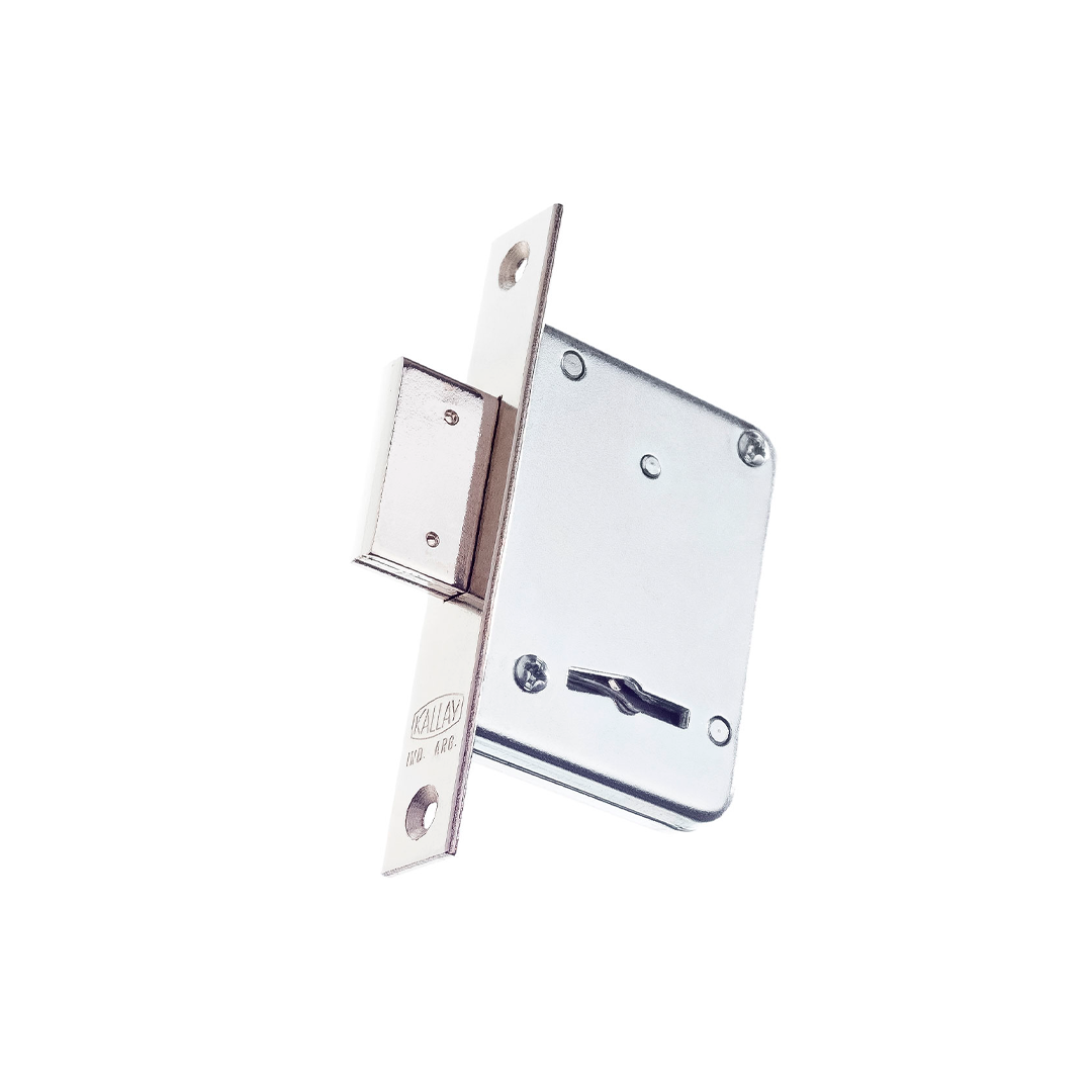 Caja angosta. Cerrojo rectangular de acero laminado. Cuatro plaquetas de acero laminado galvanizado. Resortes de acero laminado. Caja y piezas interiores con protección galvánica. Llaves de bronce forjado. Para embutir.