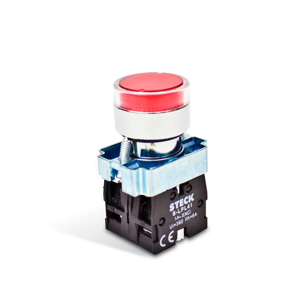 PULSADOR ROJO 22.5mm REDONDO METALICO